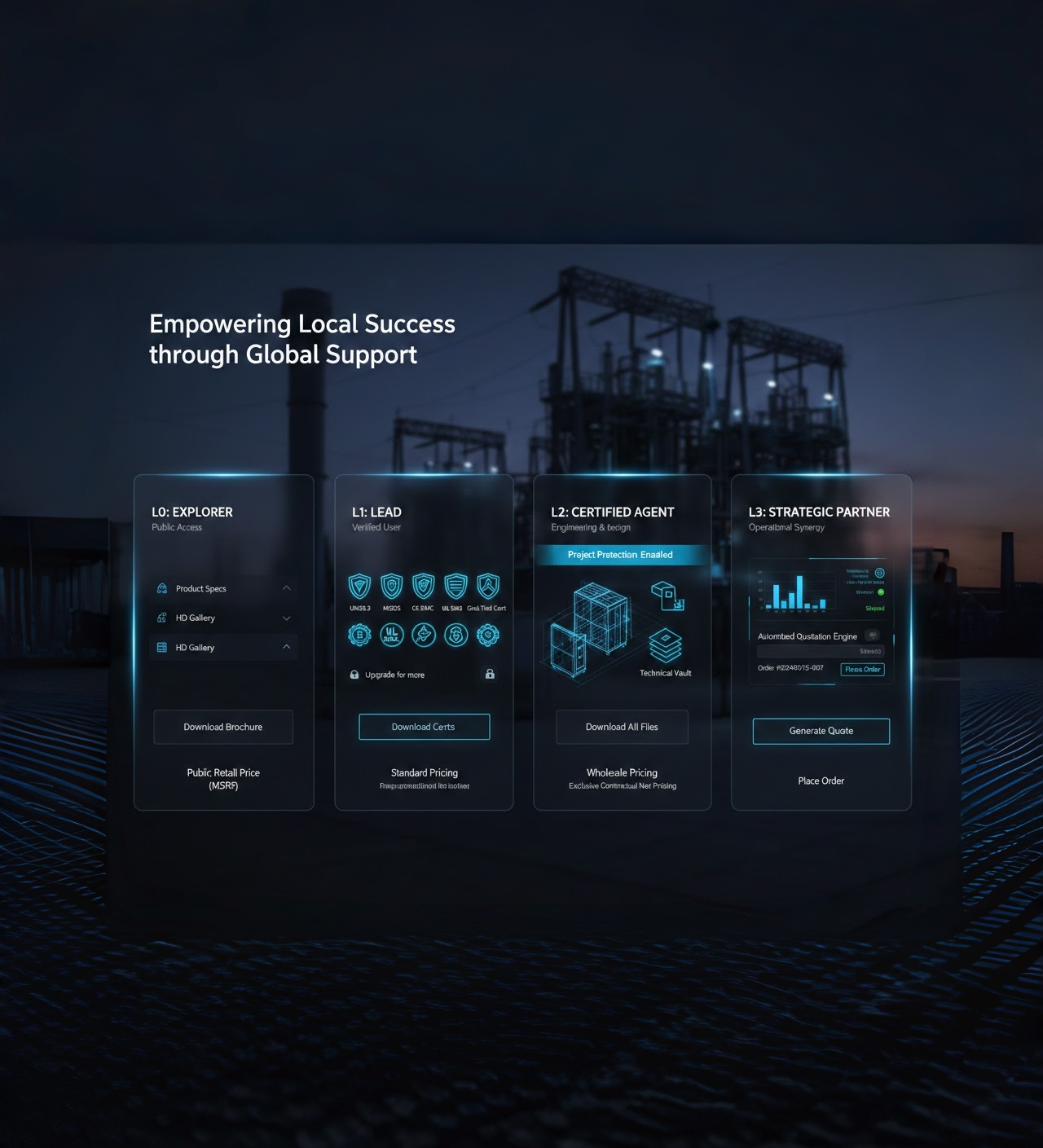 FFD POWER verkauft in den autorisierten Gebieten nicht direkt an Endkunden. Alle Projekte, Kunden und Geschäftsmöglichkeiten werden gemeinsam mit unseren Partnern entwickelt und umgesetzt – für langfristiges Vertrauen, stabile Margen und nachhaltiges Wachstum.