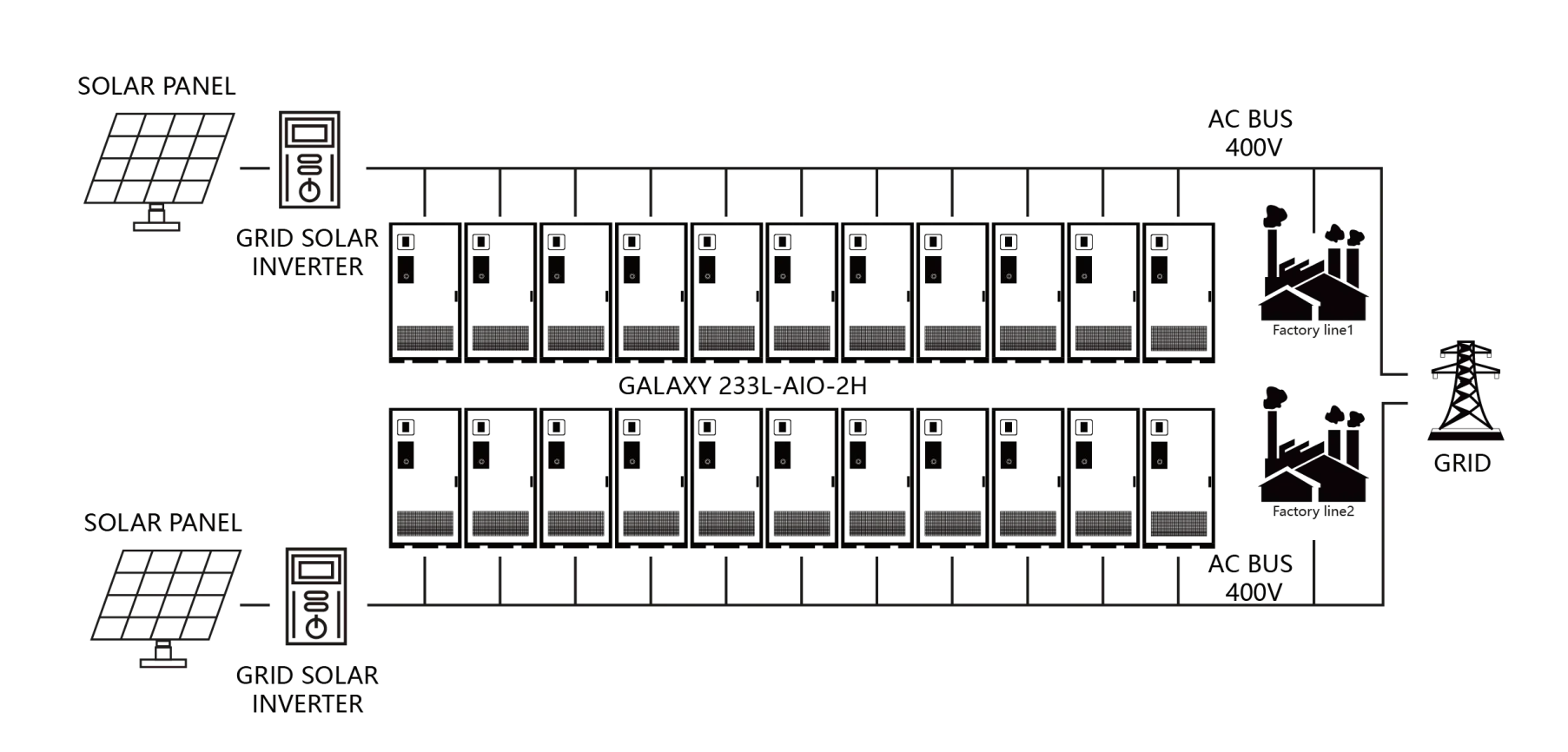 The GALAXY 233L-AIO-2H energy storage cabinets, integrated via AC coupling, offer efficient storage and discharge capabilities while addressing logistical limitations.